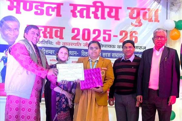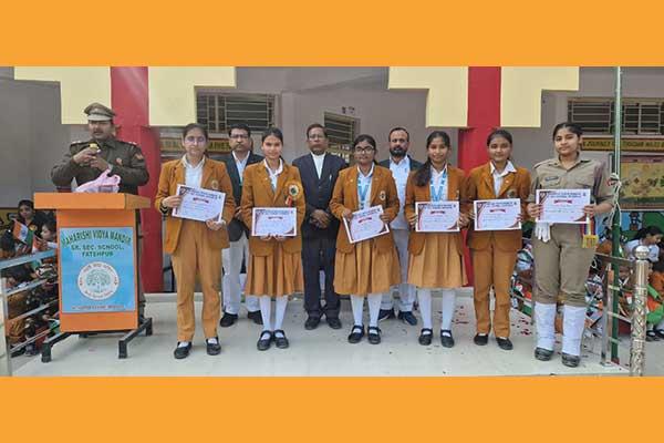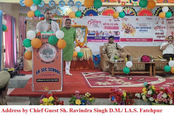 Program on Women Empowerment. Sh. Ravindra Singh District Magistrate/I.A.S., was Chief Guest, Sh. Pawan Kumar Meena C.D.O./I.A.S., Miss Naushin Trainee I.A.S., Sh. M.P. Singh Additional Police Superintendent (I.P.S.), Sh. Rakesh Kumar D.I.O.S.(P.E.S.), Mrs. Bhartiya Tripathi B.S.A.(P.E.S.), Mr. Rishant Srivastava District Probation Officer (P.C.S.) etc attended the program. The District Magistrate awarded some students for their outstanding presentation.