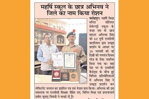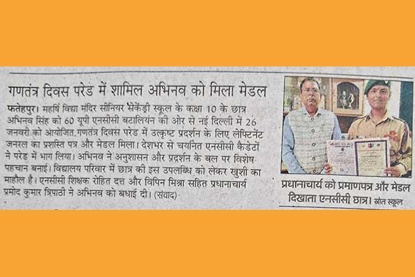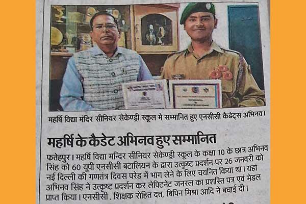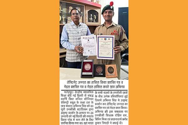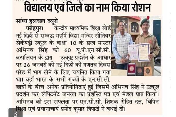 Master Abhinav Singh Class 10th was selected to attend Republic Day Parade at New Delhi.